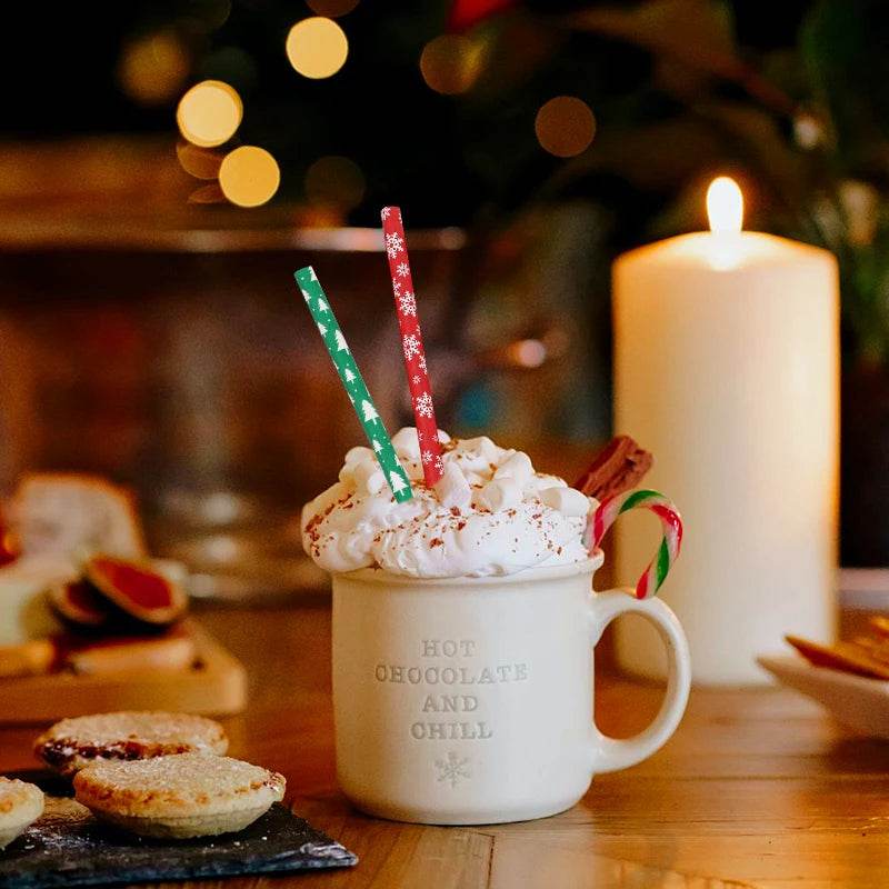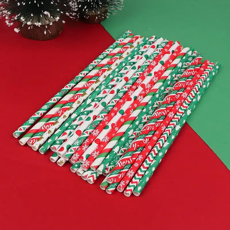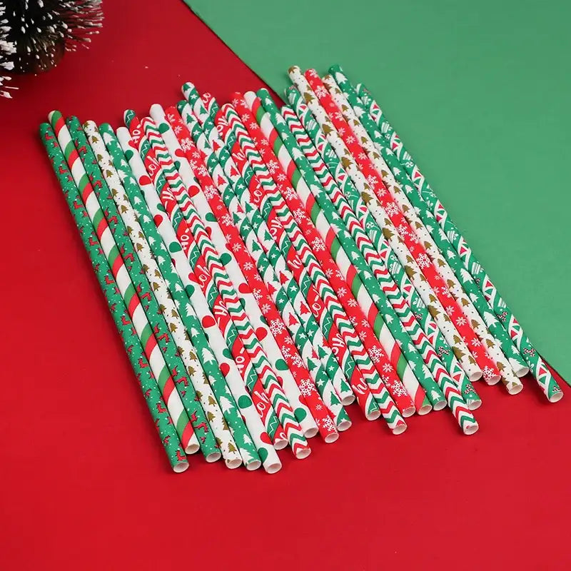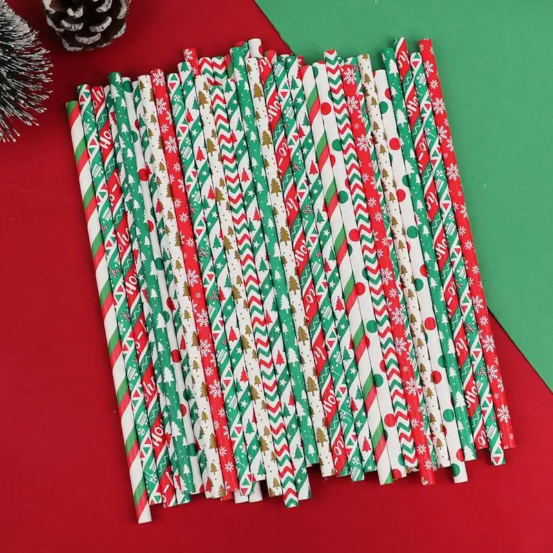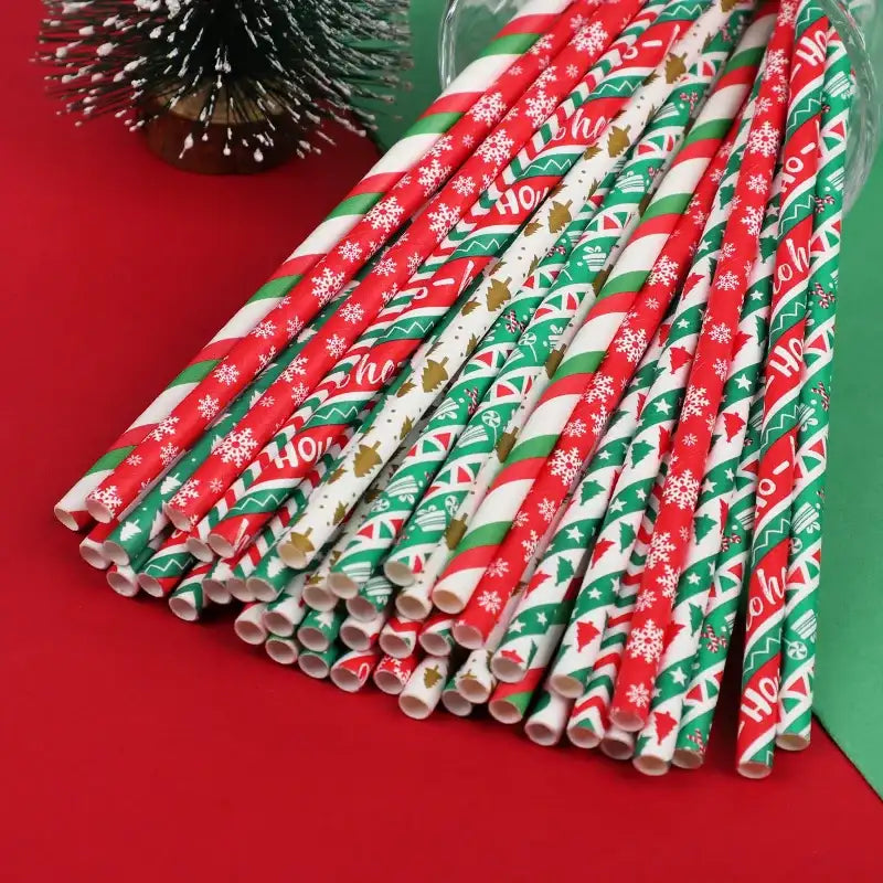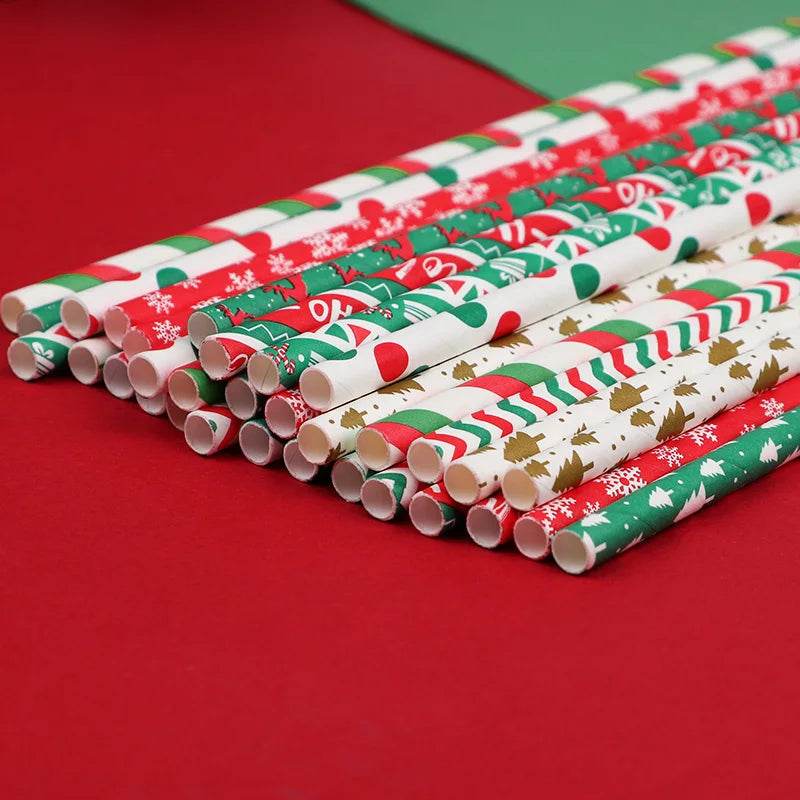 Pailles en Papier Jetables de Noël – Lot de 100 pièces